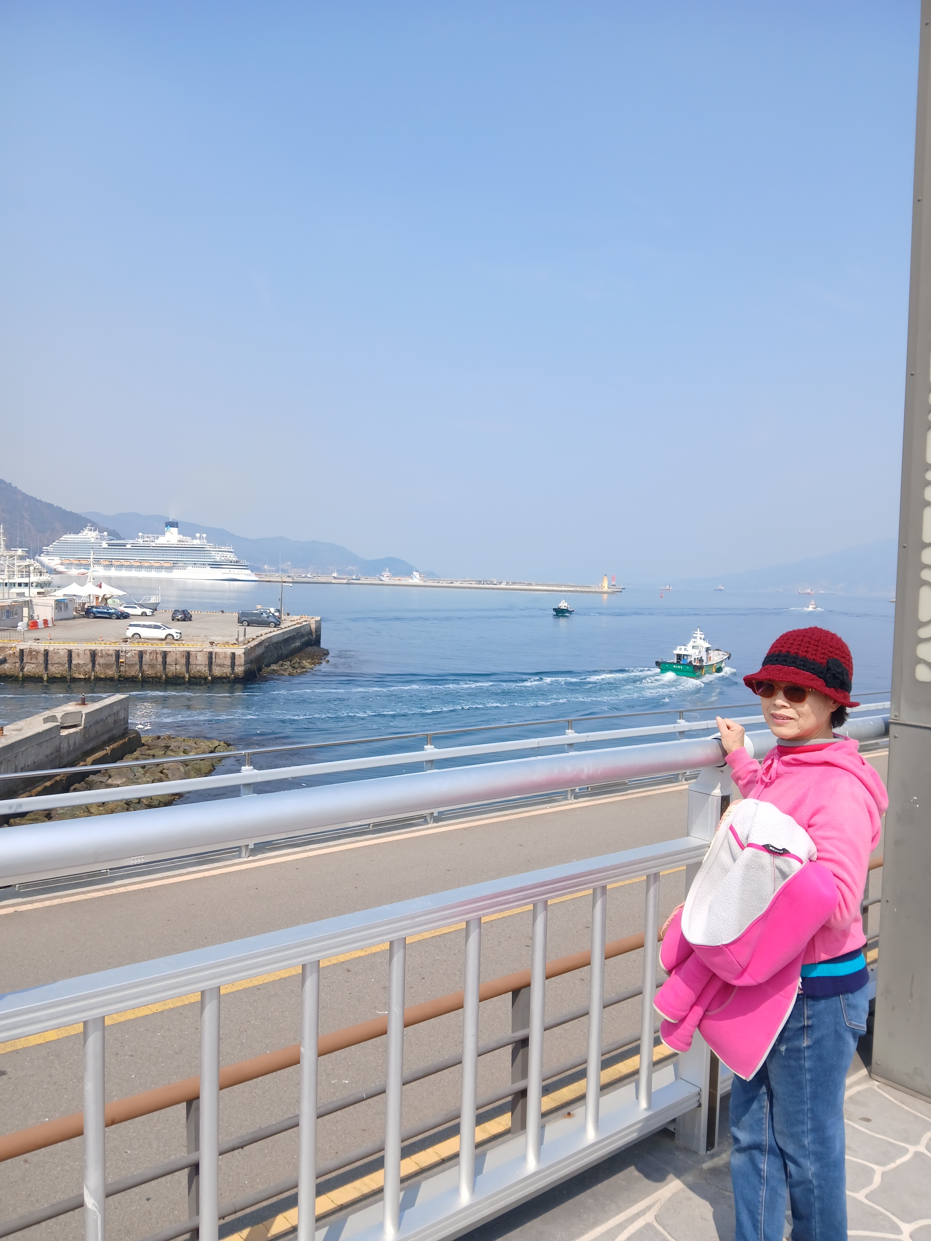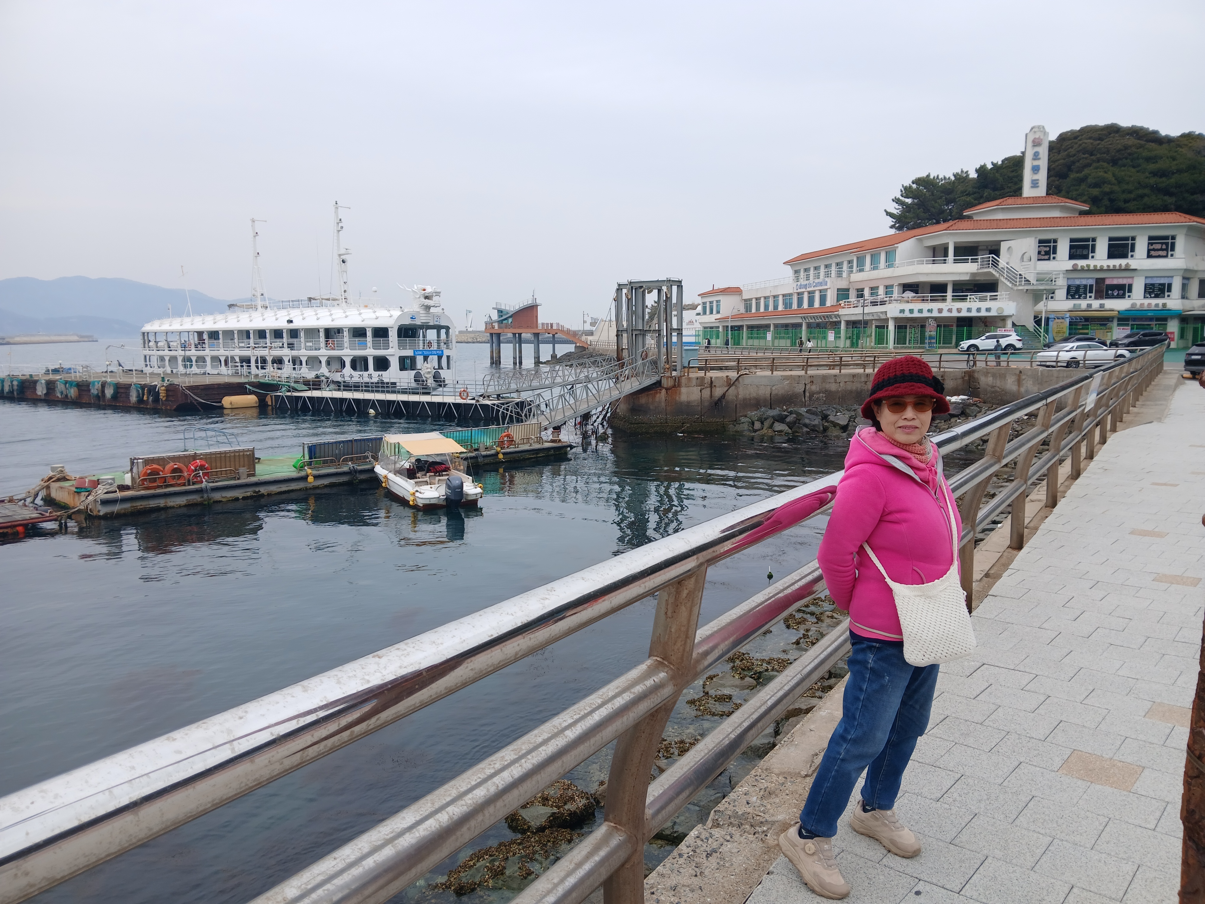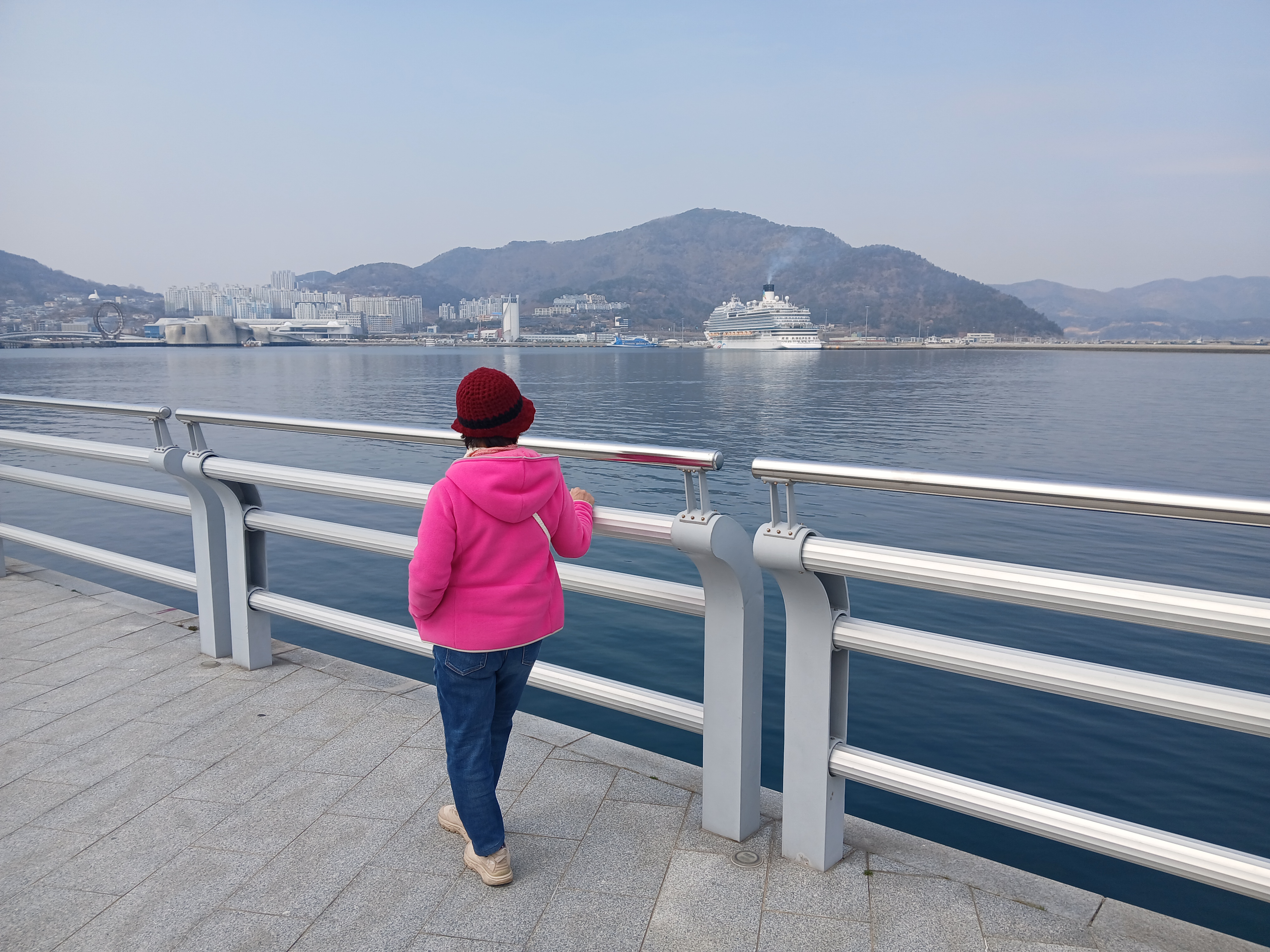 저기 건너편에 중국에서 온 크루즈가 한 척 정박되어 있다